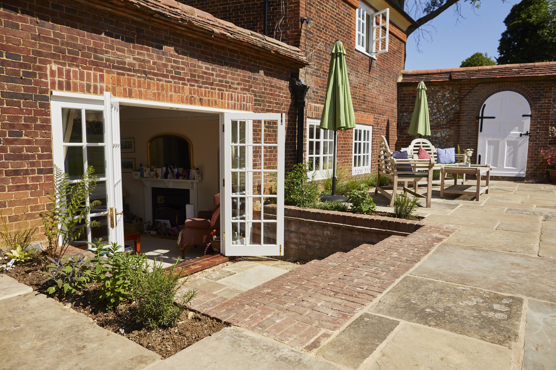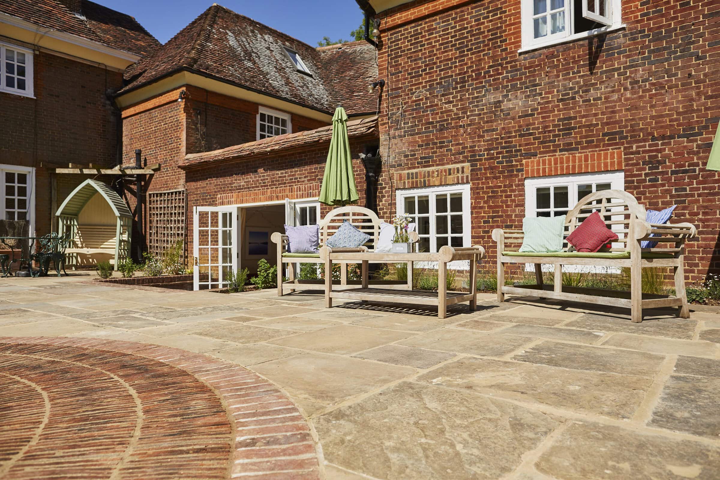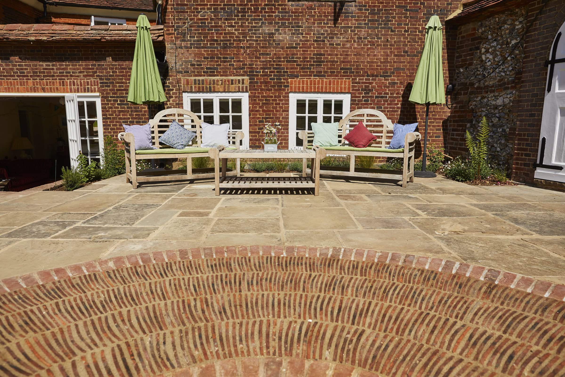 At its heart lies a striking centrepiece, set against a backdrop of reclaimed Yorkstone paving. With its rich, earthy tones and natural character, the Yorkstone grounds the design in heritage while enhancing the beauty of the surrounding elements. It’s a celebration of enduring materials and the quiet power they hold in shaping a truly exceptional space.